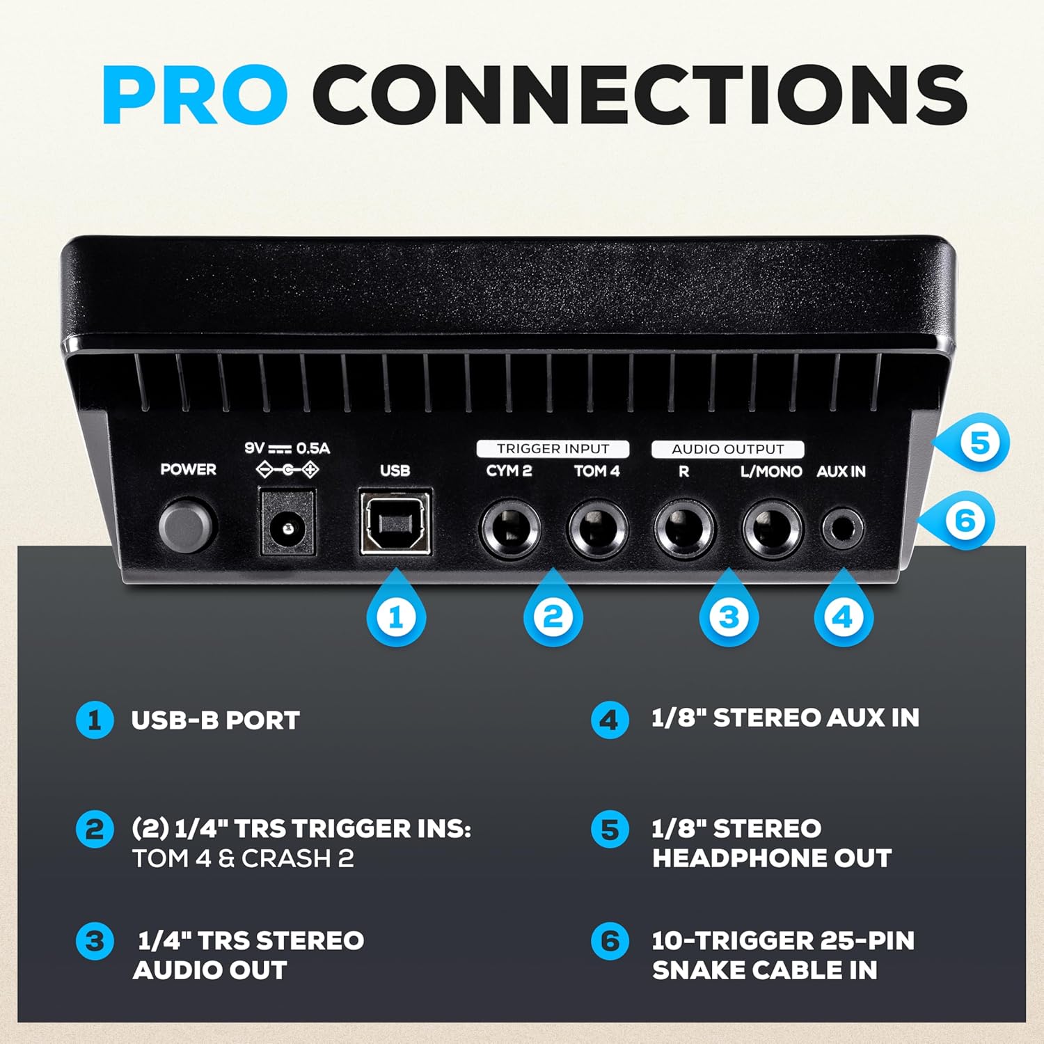 - 10" dual-zone deep mesh snare for realistic response and dynamic sensitivity