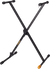 The HERCULES EZStep Keyboard Stand KS100B features a collapsible foldable design, stores in 88% of the space it takes to store a full size keyboard stand, stand sets to 6 different positions with a foot pedal trigger.